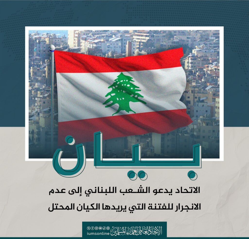 الاتحاد يدعو الشعب اللبناني بكل مكوناته إلى عدم الانجرار للفتنة والحرب الداخلية التي يريدها الكيان ...