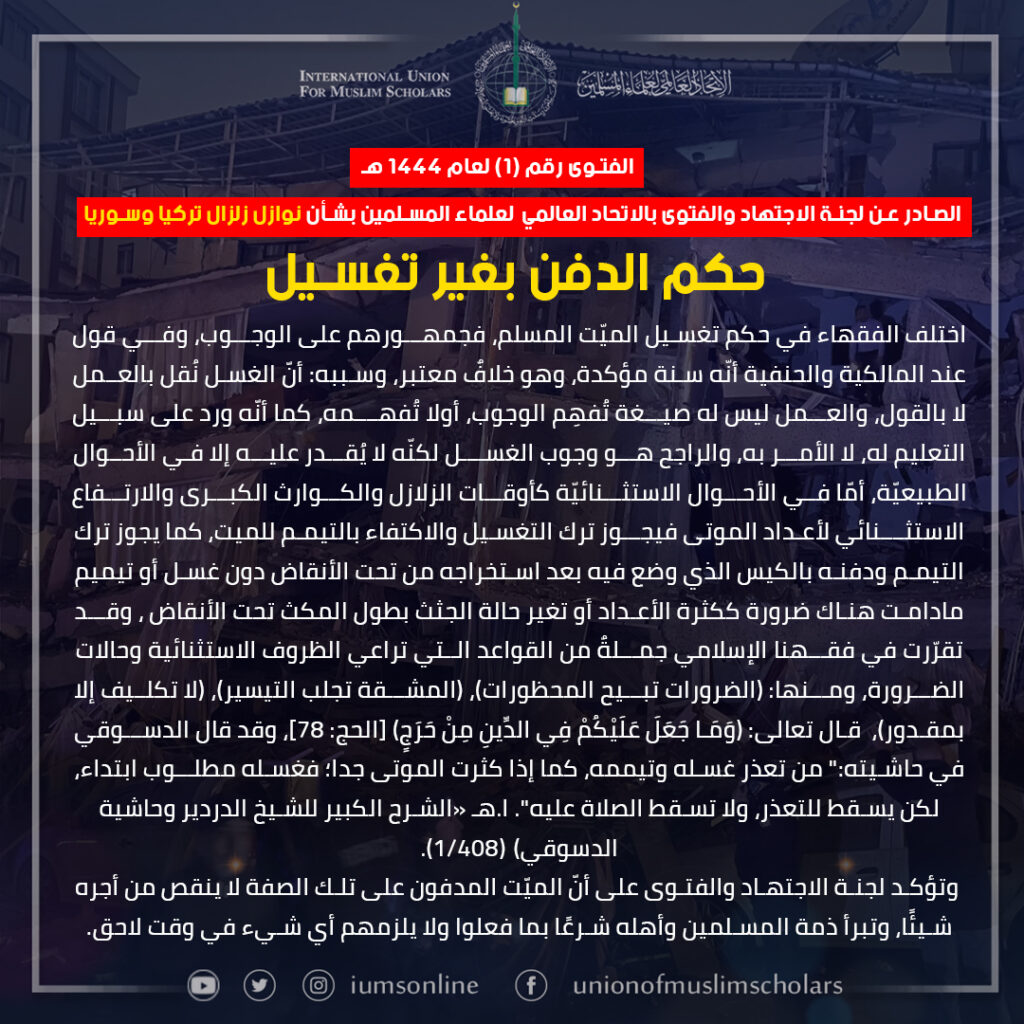القرار رقم (3) لعام 1444 ه الصادر عن لجنة الاجتهاد والفتوى بالاتحاد العالمي لعلماء المسلمين ...