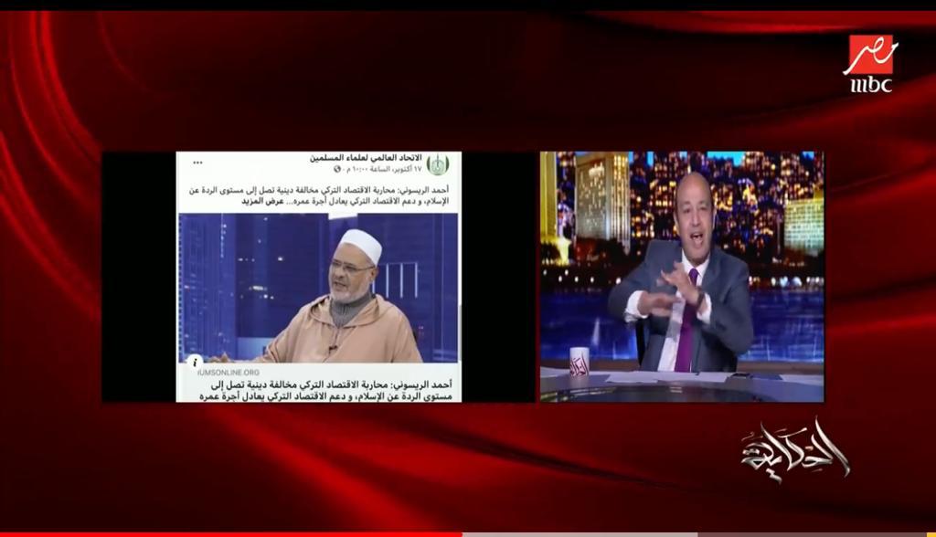 افتراءات عمرو أديب بشأن علاقة الريسوني بفتوى “محاربة الاقتصاد التركي مخالفة دينية ودعمه يعادل أجرة عمره”NULL