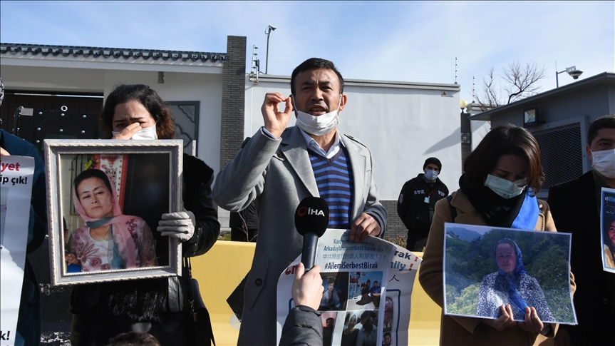 مسلمو الأويغور يتظاهرون أمام السفارة الصينية في أنقرة للمطالبة بالإراج عن محتجزين لدى بكين