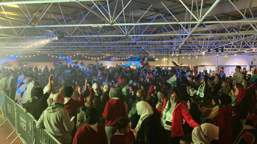بالأعلام الفلسطينية الضخمة تستقبلك بوابة قاعة مغطاة في منطقة “هارو” بالعاصمة البريطانية لندن المحتضنة لفعاليات مهرجان فلسطين الذي درج المنتدى الفلسطيني على تنظيمه في “الإكسبو” ببريطانيا كل سنة.