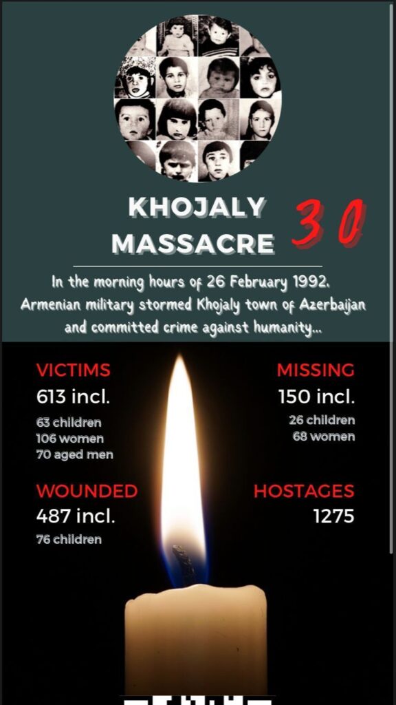 يوافق 26 فبراير 2022 الذكرى الثلاثين لمجزرة خوجالي الجماعية التي ارتكبتها القوات المسلحة الأرمينية خلال العدوان الأرميني على أذربيجان