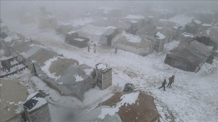 وتعاني مخيمات النازحين السوريين في إدلب سنويا موجات البرد والثلج جراء إيواء سكانها في مخيمات بدائية لا تقيهم من البرد وسط ضعف إمكانات التدفئة، وغرق العديد منها جراء غزارة الأمطار