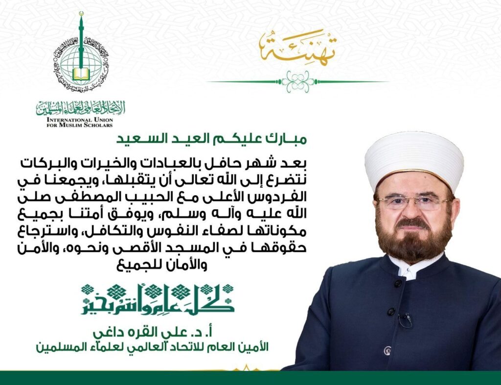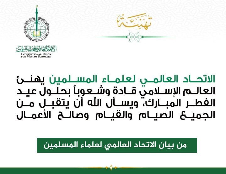 الاتحاد يهنئ العالم الإسلامي بحلول عيد الفطر المبارك ويدعوهم إلى الوحدة والتعاون لنصرة المظلومين وحماية المقدسات