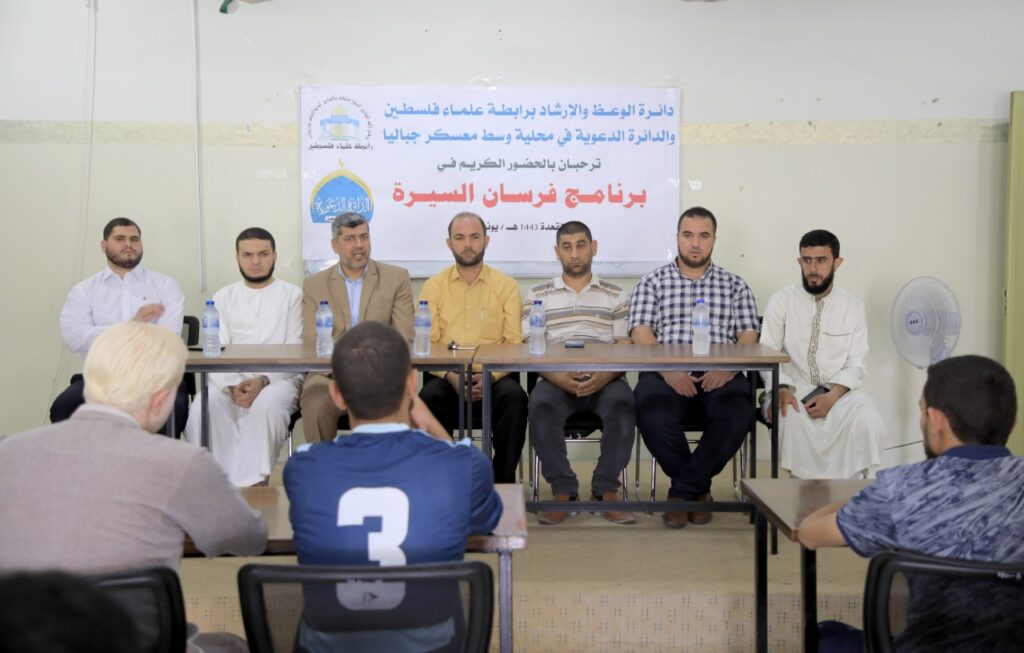 رابطة علماء فلسطين والدائرة الدعوية في محلية وسط معسكر جباليا، تقيمان البرنامج الدعوي بعنوان: فرسان السيرة، وذلك في قاعة دار القرآن الكريم والسنة في شمال غزة