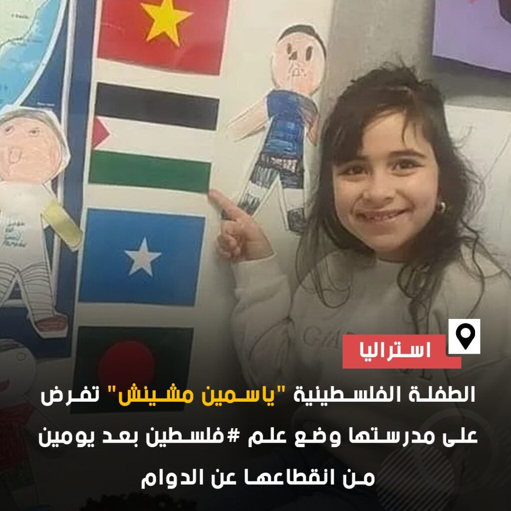 الطفلة الفلسطينية “ياسمين مشينش” تفرض على مدرستها في أستراليا وضع علم فلسطين بعد يومين من انقطاعها عن الدوام