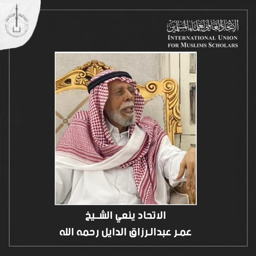 الاتحاد العالمي لعلماء المسلمين ينعي الشيخ عمر عبدالرزاق الدايل -رحمه الله- أحد كبار الدعاة في الكويت والسعودية، والمدير التنفيذي الأسبق لجمعية الإصلاح الاجتماعي