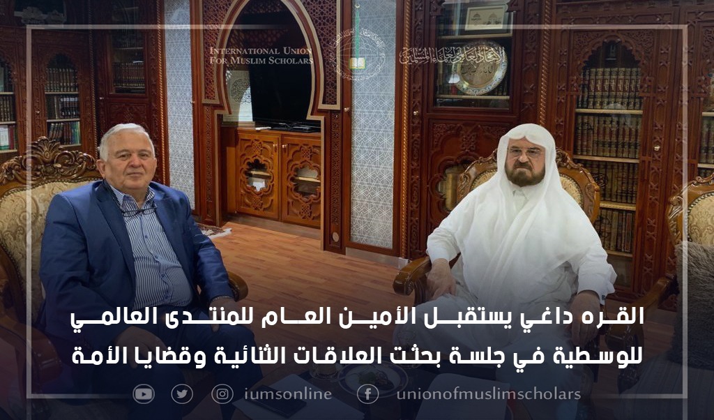استقبل فضيلة الشيخ علي القره داغي الأمين العام للاتحاد العالمي لعلماء المسلمين، المهندس مروان الفاعوري الأمين العام للمنتدى العالمي للوسطية، بهدف عرض مشروع المنتدى الجديد حول تنظيم مؤتمر دولي بعنوان: “القدس توحدنا”