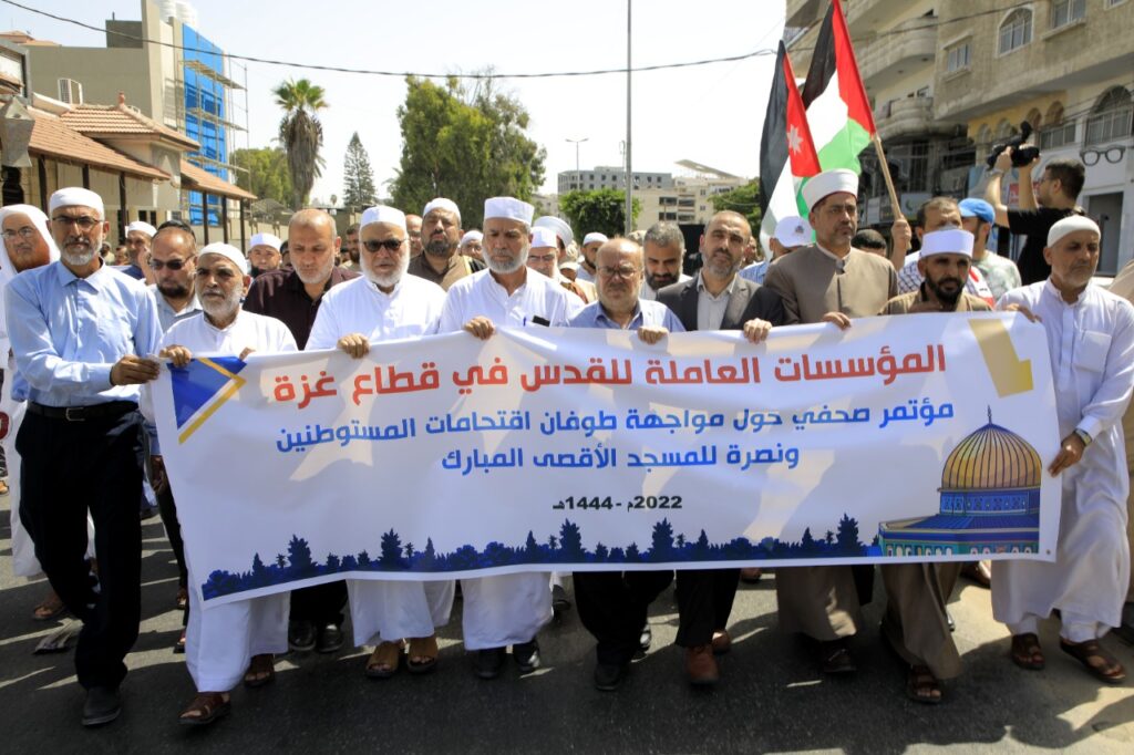 المؤسسات العلمائية والعاملة لأجل القدس في قطاع غزة تنظم مسيرة للعلماء نصرة للمسجد الأقصى، وتدعو المقاومة لرفع حالة الجهوزية والاستنفار دفاعاً عن الأقصى