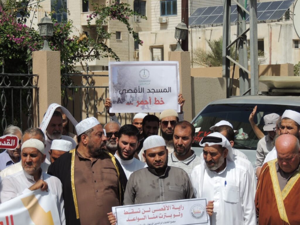 وفي ختام هذه الوقفة دعا د. مروان أبوراس رئيس فرع الاتحاد العالمي لعلماء المسلمين في فلسطين زعماء الدول العربية والإسلامية للتدخل والعمل على وقف الاعتداءات في القدس.