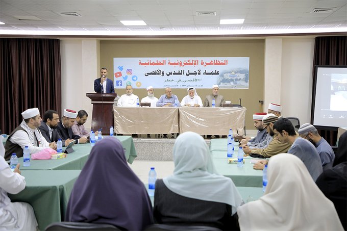 عدد من المؤسسات العلمائية والمؤسسات العاملة لأجل القدس في قطاع غزة، ولفيف من علماء الأمة، ينظمون تظاهرة إلكترونية بعنوان: “علماء لأجل القدس”
