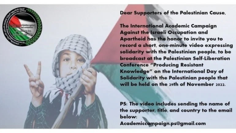 * إطلاق نداء إلى جميع الطلبة الجامعيين في العالم لاعتبار “إسرائيل” دولة احتلال مارقة، تنتهك القانون الدولي وتفرض حالة الأبرتهايد على الأراضي الفلسطينية المحتلة وتمارسها.