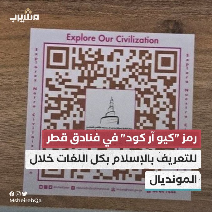 بعض فنادق الدوحة تضع “باركود” في غرفها للتعريف بالإسلام بلغات عدة خلال بطولة كأس العالم لكرة القدم 2022، التي ستنطلق في قطر الأحد القادم، لأول مرة في المنطقة العربية