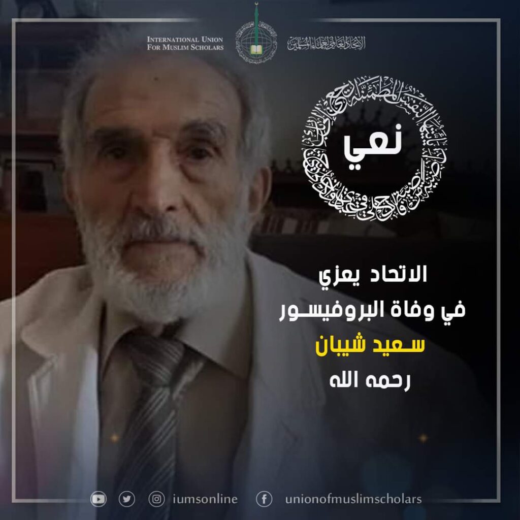 الاتحاد يعزي في وفاة البروفيسور سعيد شيبان، وزير الشؤون الدينية والاوقاف الجزائري السابق وعضو الاتحاد وعضو جمعية العلماء المسلمين الجزائريين، وبروفيسور طب العيون، عن عمر ناهز 97 سنة.