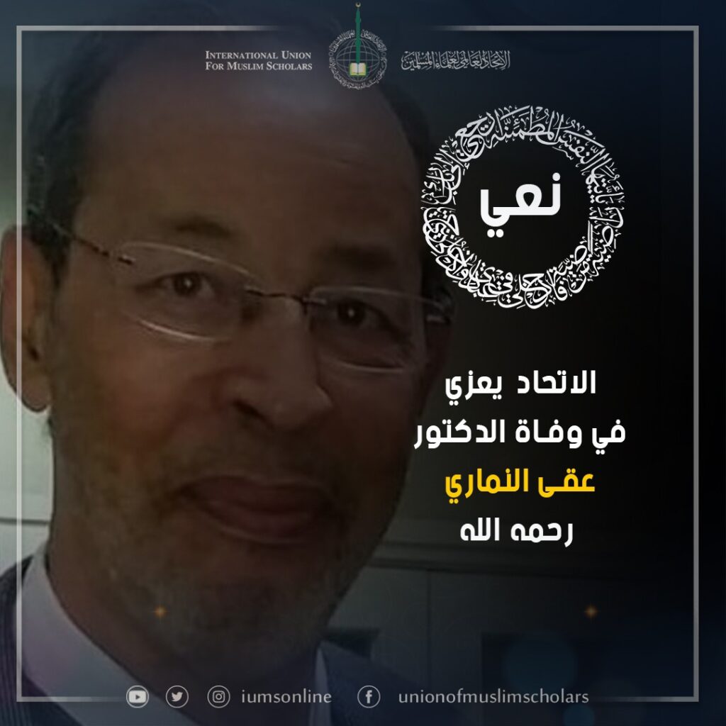 بقلوب مؤمنة بالرضا بقضاء الله يتقدم الاتحاد العالمي لعلماء المسلمين بأحر التعازي وأصدق المواساة في وفاة العالم الأصولي الأستاذ الدكتور عبد القادر عقى النماري "رحمه الله" أحد هامات وأركان شعبة الدراسات الإسلامية في المغرب.