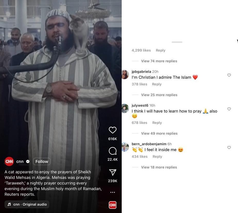 تداول رواد مواقع التواصل الاجتماعي فيديو للإمام الجزائري وليد مهساس وهو يصلي صلاة التراويح في أحد ليالي رمضان 1443ه، حيث شاغلته قطة وعاملها بلطف ورفق وهدوء.