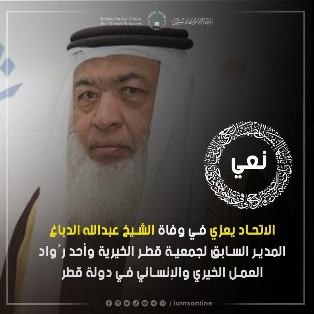 الاتحاد العالمي لعلماء المسلمين يعزي في وفاة الشيخ عبدالله الدباغ المدير السابق لجمعية قطر الخيرية وأحد رُواد العمل الخيري والإنساني في دولة قطر