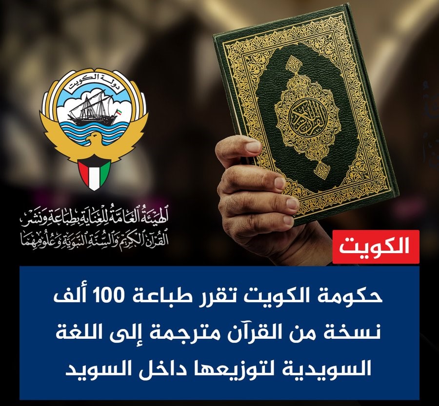 الكويت : تكليف هيئة العناية بطباعة 100,000 نسخة من المصحف الشريف مترجمة إلى اللغة السويدية