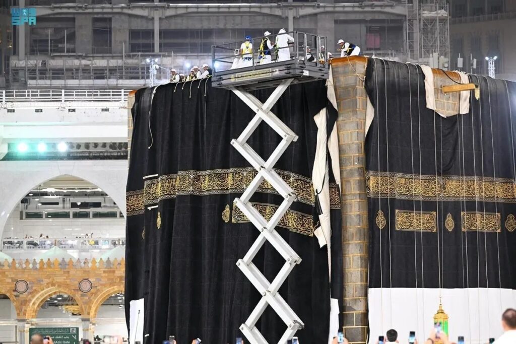“تم استبدال كسوة الكعبة المشرفة بكسوة جديدة بدايةً من العام الهجري الجديد، وتم صنع هذه الكسوة من الحرير الخام المصبوغ باللون الأسود، وفقًا لوكالة الأنباء السعودية (واس). ويأتي هذا الحدث المهم في إطار تقليد قديم يتم القيام به كل عام، حيث يتم استبدال كسوة الكعبة المشرفة بكسوة جديدة لتظل الكعبة محفوظة ومحمية بشكل جيد. ويُعتبر هذا الحدث من أهم الأحداث في العالم الإسلامي، ويتابعه المسلمون في جميع أنحاء العالم بشغف واهتمام كبير.”