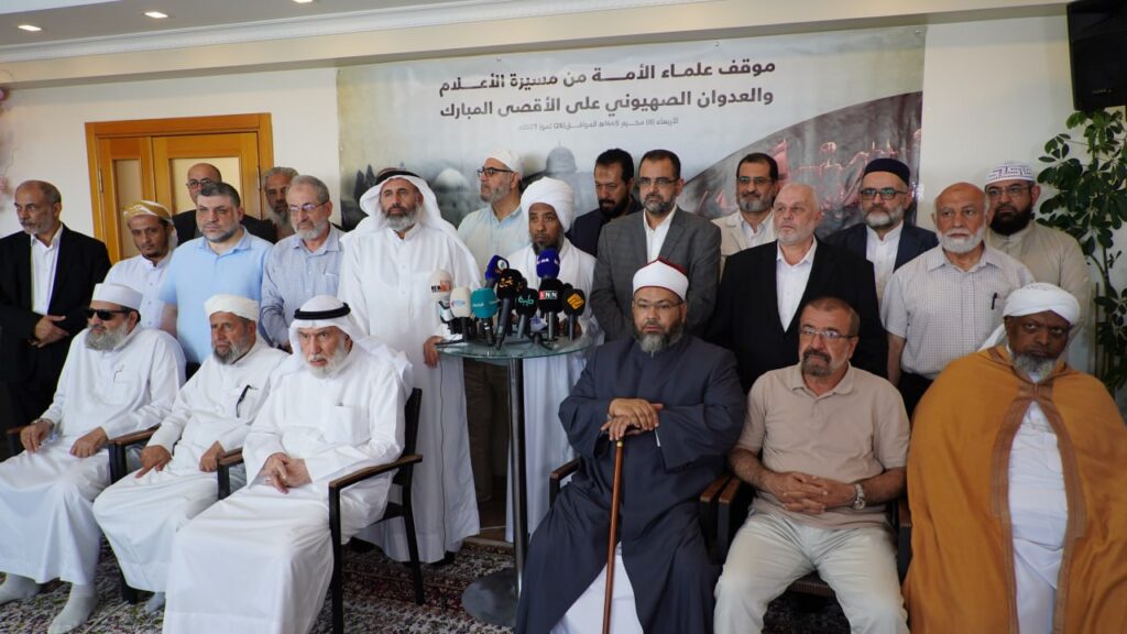 انعقاد المؤتمر الصحفي لعلماء الأمة تحت عنوان “موقف علماء الأمة من مسيرة الأعلام والعدوان الصهيوني على الأقصى المبارك”