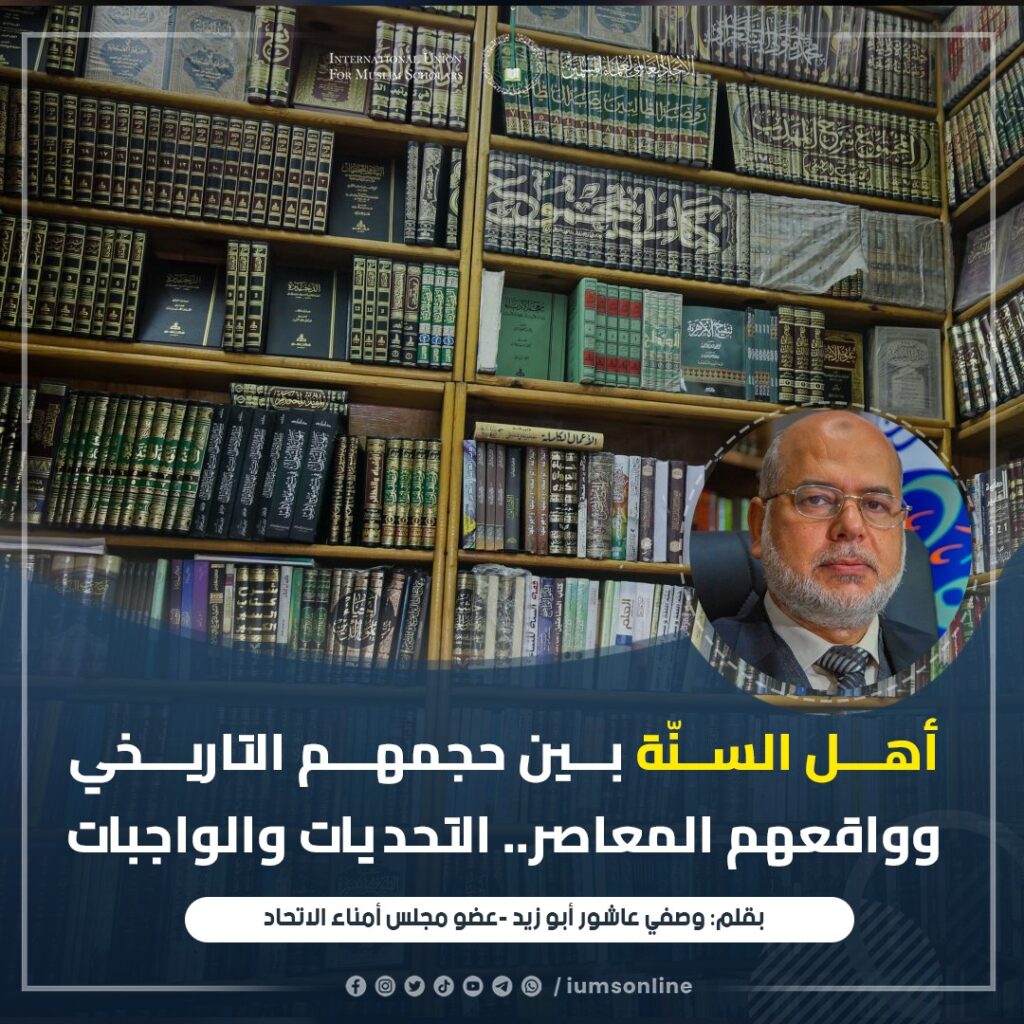 يمثل أهل السُّنة من المسلمين أكثر من 90%، وقد كانوا عبر التاريخ هم الحاضنة الكبرى والأم العظمى لكل تيارات الإسلام العقدي والسياسي والدعوي