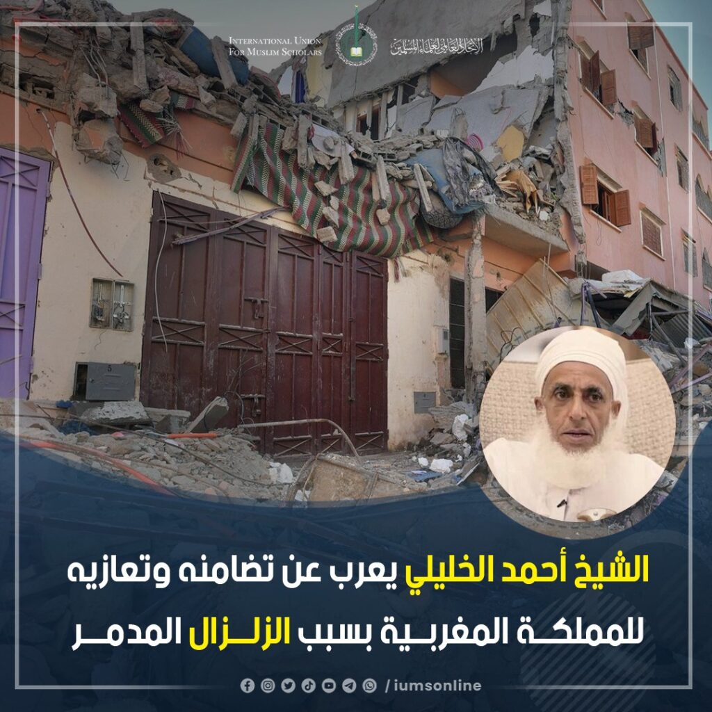 سماحة الشيخ أحمد الخليلي يعرب عن تضامنه الصادق وتعازيه الخالصة، ومشاعر المواساة للشعب المغربي العزيز بسبب الزلزال الذي وقع في المملكة المغربية مساء الجمعة