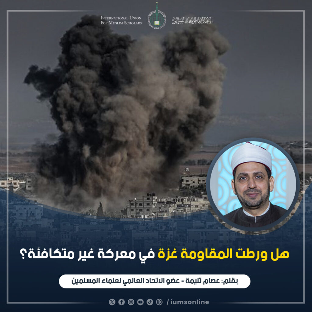 وقد كفانا القرآن الكريم مؤونة النقاش في هذه القضايا، حين قال تعالى: (وَأَعِدُّواْ لَهُم مَّا ٱسۡتَطَعۡتُم مِّن قُوَّةٖ وَمِن رِّبَاطِ ٱلۡخَيۡلِ تُرۡهِبُونَ بِهِۦ عَدُوَّ ٱللَّهِ وَعَدُوَّكُمۡ وَءَاخَرِينَ مِن دُونِهِمۡ لَا تَعۡلَمُونَهُمُ ٱللَّهُ يَعۡلَمُهُمۡۚ وَمَا تُنفِقُواْ مِن شَيۡءٖ فِي سَبِيلِ ٱللَّهِ يُوَفَّ إِلَيۡكُمۡ وَأَنتُمۡ لَا تُظۡلَمُونَ) الأنفال: 60، والأوامر الشرعية من رحمة الله بالناس ولطفه بهم، مرهونة بالاستطاعة، فيقول تعالى عن الحج: (وَلِلَّهِ عَلَى ٱلنَّاسِ حِجُّ ٱلۡبَيۡتِ مَنِ ٱسۡتَطَاعَ إِلَيۡهِ سَبِيلٗاۚ) آل عمران: 97، فلم يأمر الله المجاهدين بالإعداد المكافئ تمامًا للعدو، بل طالبهم ببذل أقصى جهد يمكن، من حيث الإعداد والتدريب، والتضحية، وإلا فإنّه لن يكون هناك مقاومة، وسُنن الله في كونه، أنه لا شيء يبدأ كاملًا، سواء كان ماديًا أم معنويًا.