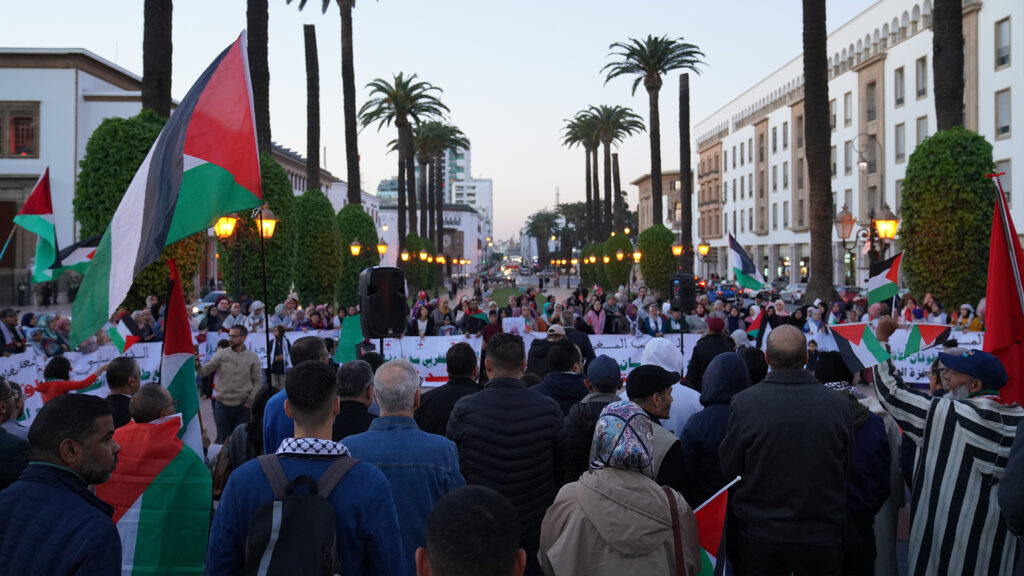 احتشاد كبير أمام البرلمان بالرباط في تضامن مستمر مع الشعب الفلسطيني وتجديد الدعوة لقطع العلاقات مع الاحتلال