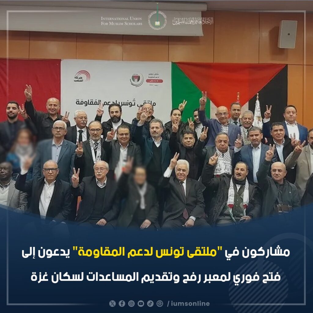 “ملتقى تونس لدعم المقاومة” يطالب المشاركون في ختام فعاليات بالفتح الفوري لمعبر رفح على الحدود مع قطاع غزة مع التأكيد على ضرورة توجيه جميع المساعدات الإنسانية إلى سكان القطاع