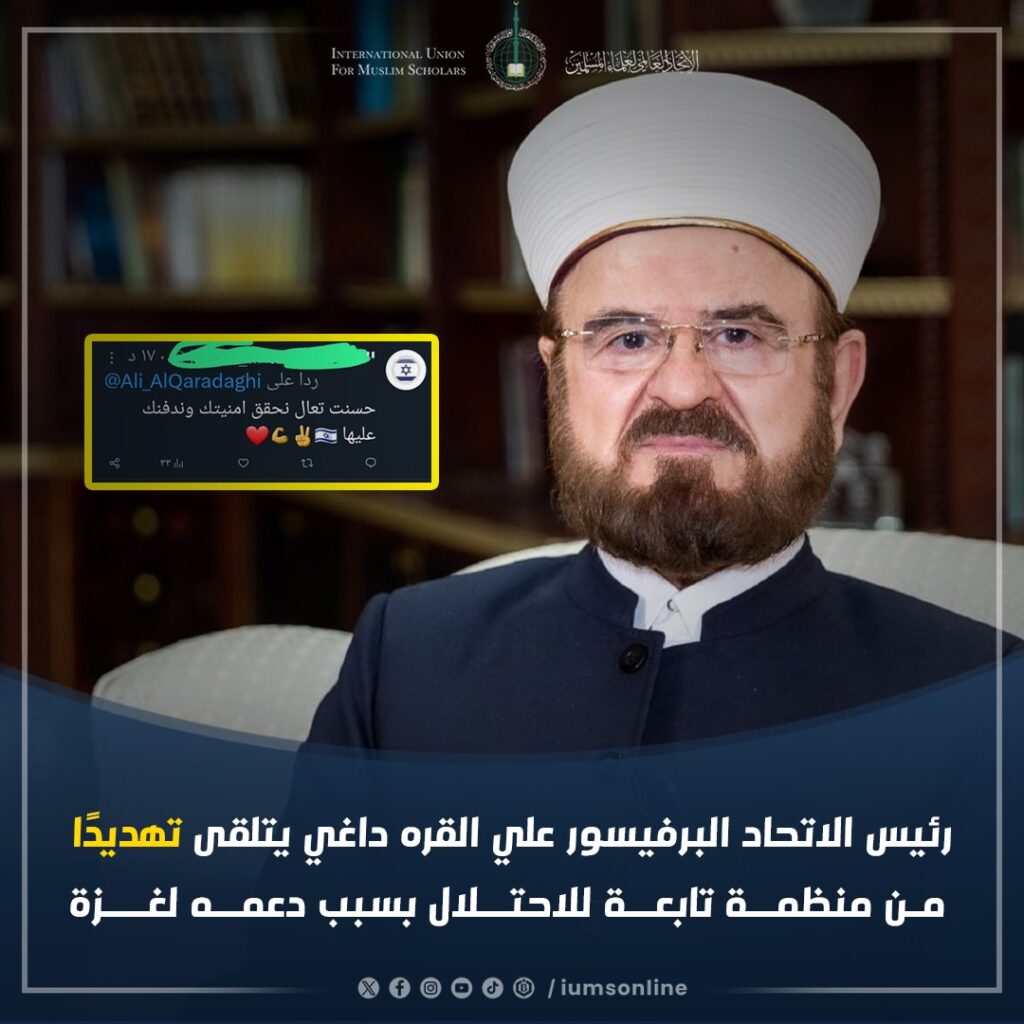 رئيس الاتحاد البرفيسور علي القره داغي يتلقى تهديدًا من منظمة تابعة للاحتلال بسبب دعمه لغزة