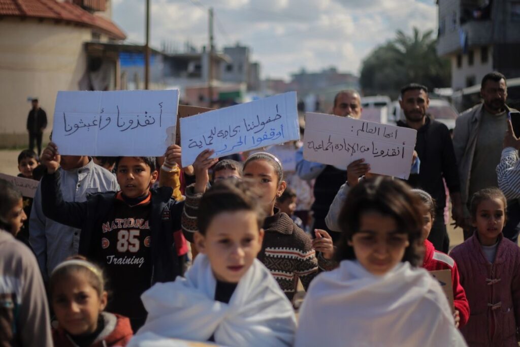 يتعرض الأطفال النازحون إلى خطر متزايد، حيث نظم بعضهم مسيرة للتعبير عن مطالبهم بوقف العدوان وحقهم في الحياة الكريمة والتعليم واللعب