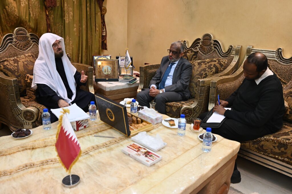 رئيس الاتحاد العالمي لعلماء المسلمين يستقبل سعادة سفير دولة جنوب افريقيا السيد غلام جسين أسمال في مكتبه في مقر الاتحاد بالدوحة وبحث اللقاء جهود جنوب أفريقيا في دعم ومساندة الشعب الفلسطيني