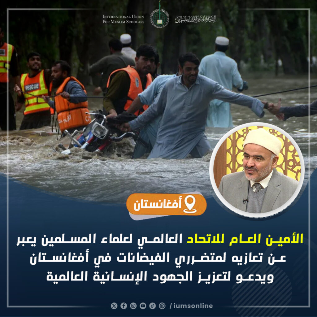الأمين العام للاتحاد العالمي لعلماء المسلمين يعبر عن تعازيه لمتضرري الفيضانات في أفغانستان ويدعو لتعزيز الجهود الإنسانية العالمية