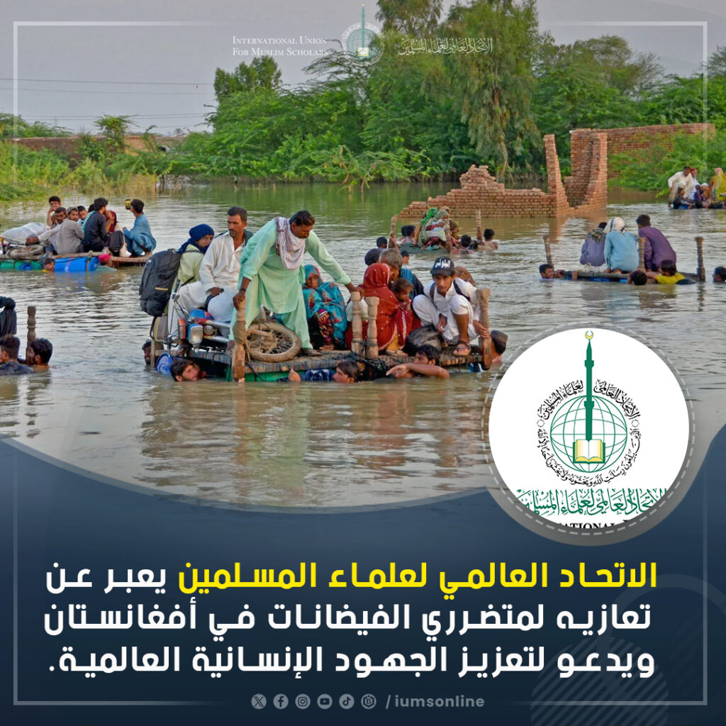 الاتحاد العالمي لعلماء المسلمين يعبر عن تعازيه لمتضرري الفيضانات في أفغانستان، ويدعو لتعزيز الجهود الإنسانية العالمية.