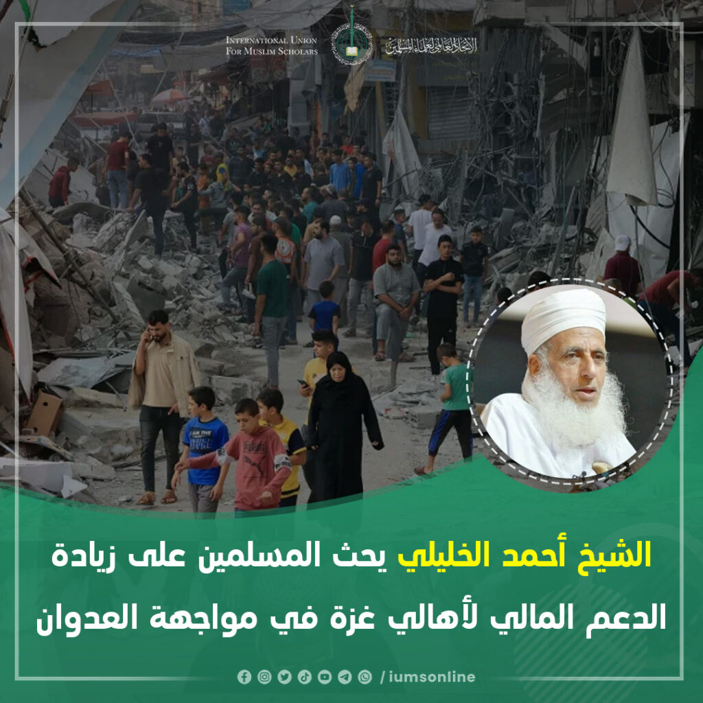 دعا الشيخ أحمد الخليلي، نائب رئيس الاتحاد العالمي لعلماء المسلمين، المسلمين في جميع أنحاء العالم إلى زيادة التبرعات المالية لدعم أهالي قطاع غزة.