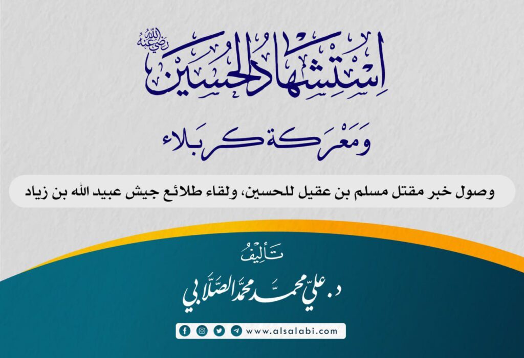 استشهاد الحسين بن علي (رضي الله عنه) ومعركة كربلاء: وصول خبر مقتل مسلم بن عقيل للحسين، ولقاء طلائع جيش عبيد الله بن زياد