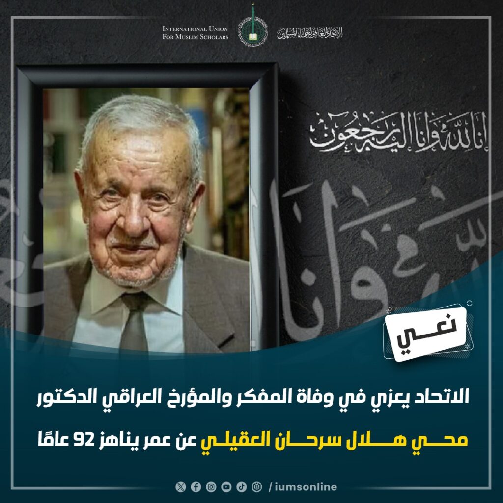 الاتحاد العالمي لعلماء المسلمين يعزي في وفاة المفكر والكاتب والمؤرخ العراقي الدكتور محي هلال سرحان العقيلي، الذي رحل عن عالمنا عن عمر يناهز 92 عامًا