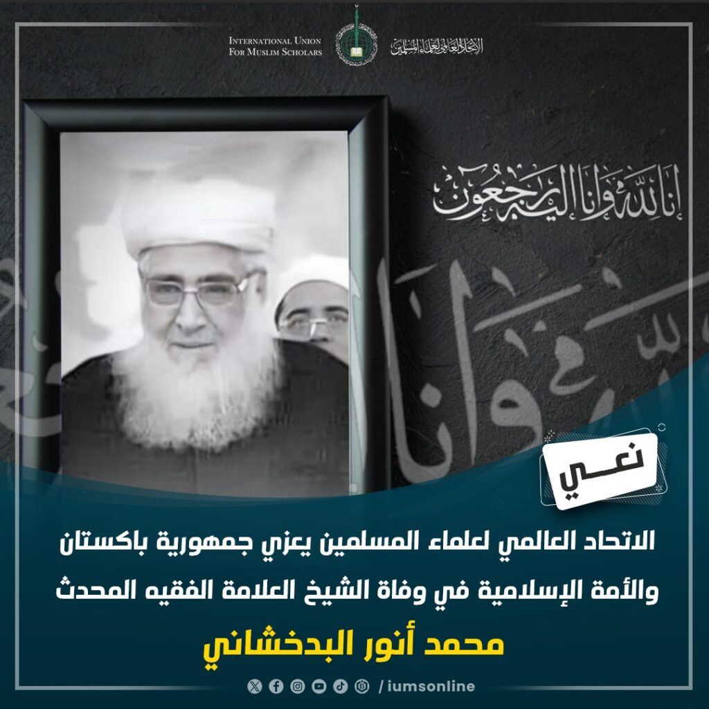 الاتحاد العالمي لعلماء المسلمين عن تعازيه الخالصة لجمهورية باكستان الإسلامية، والأمة الإسلامية، في وفاة الشيخ العلامة الفقيه المحدث محمد أنور البدخشاني، الذي انتقل إلى رحمة الله يوم الثلاثاء، 13 أغسطس 2024، في ولاية بدخشان الباكستانية