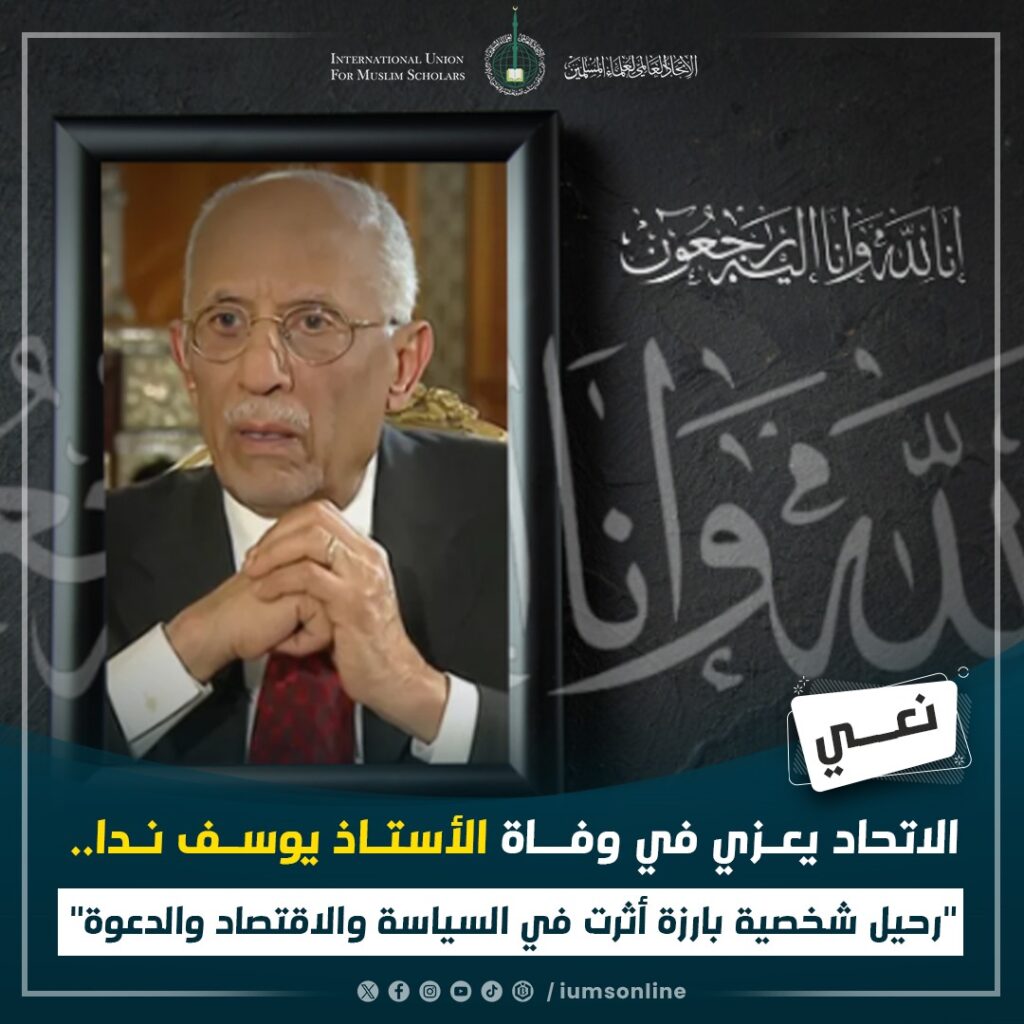 الاتحاد العالمي لعلماء المسلمين يعزي في وفاة الأستاذ يوسف ندا.. “رحيل شخصية بارزة أثرت في السياسة والاقتصاد والدعوة”