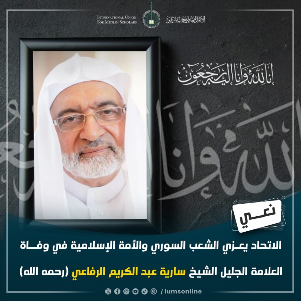 الاتحاد يعزي الشعب السوري والأمة الإسلامية في وفاة العلامة الجليل الشيخ سارية عبد الكريم الرفاعي (رحمه الله)