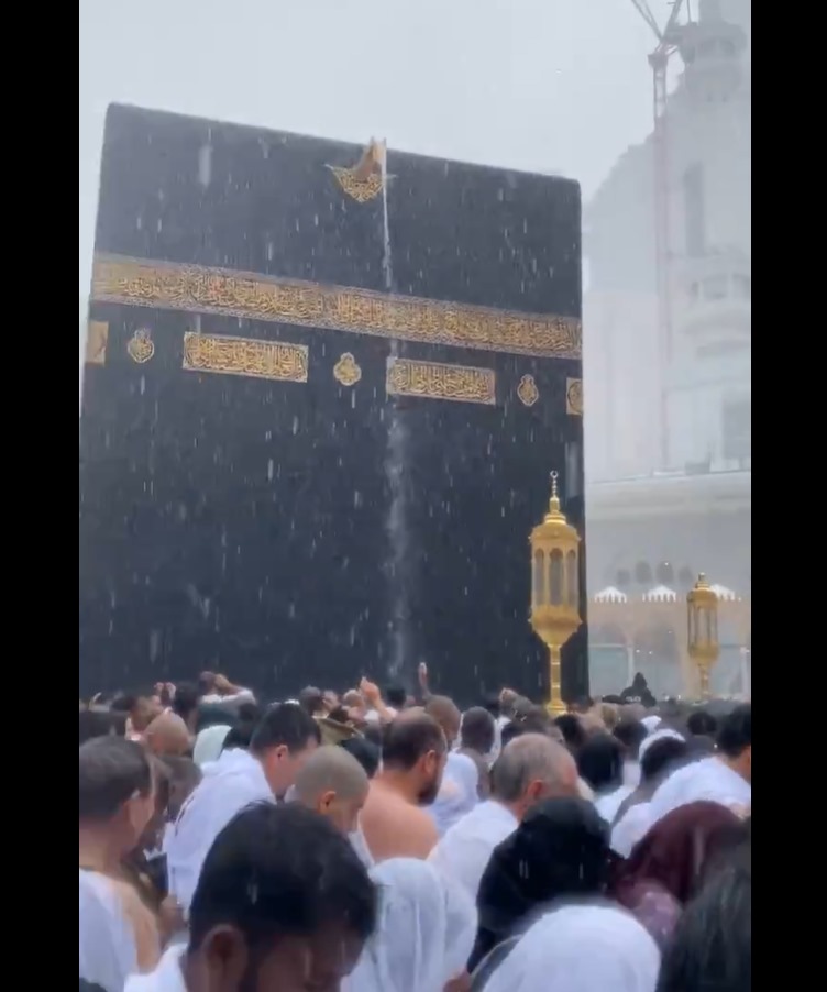 مطرٌ ورحلة إيمانية: معتمرون يطوفون حول الكعبة في مشهد مهيب تحت أمطار غزيرة (فيديو)