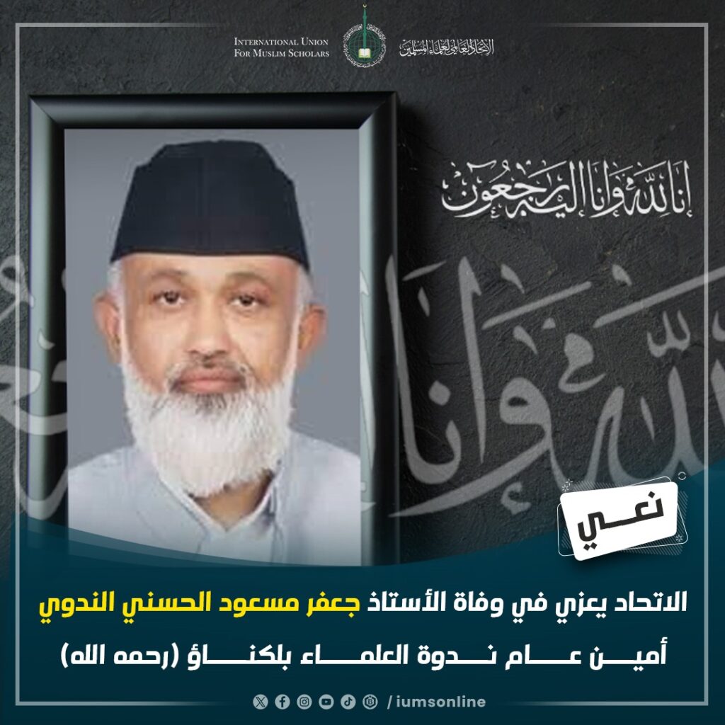 الاتحاد العالمي لعلماء المسلمين يعزي في وفاة الأستاذ جعفر مسعود الحسني الندوي، الأمين العام لندوة العلماء بلكناؤ (الهند) -رحمه الله، الذي وافته المنية يوم 15 يناير 2025م