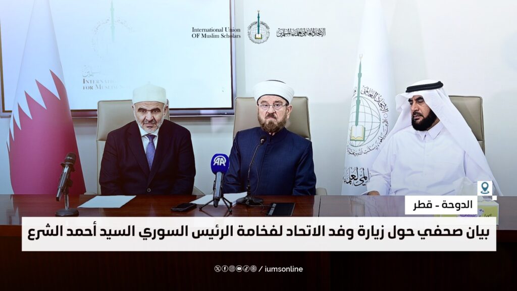 بيان صحفي حول زيارة وفد الاتحاد العالمي لعلماء المسلمين إلى سوريا ولقائه بفخامة الرئيس السوري السيد أحمد الشرع حفظه الله