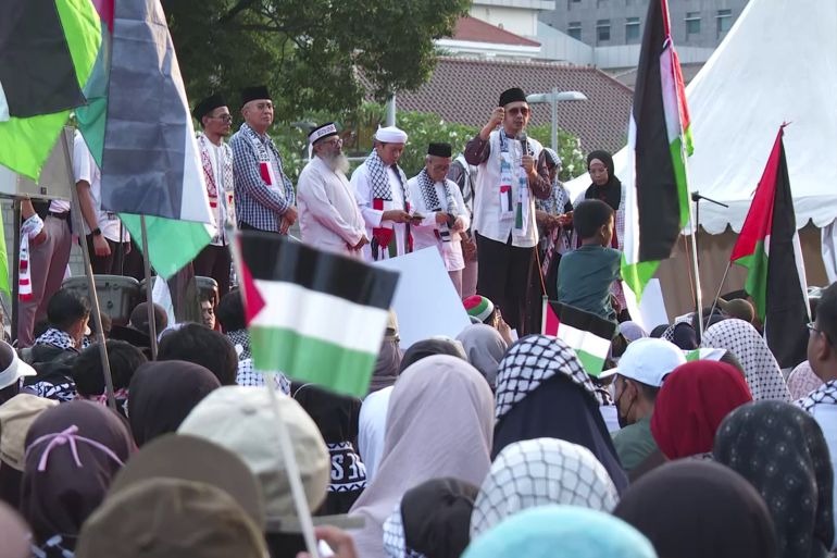 تظاهر الإندونيسيون في جاكرتا احتجاجًا على العدوان الاحتلالي على غزة، مطالبين بالضغط على الحكومات العربية والإسلامية لدعم الفلسطينيين، وتواصل إندونيسيا دعمها من خلال فعاليات تضامنية ومساعدات إنسانية