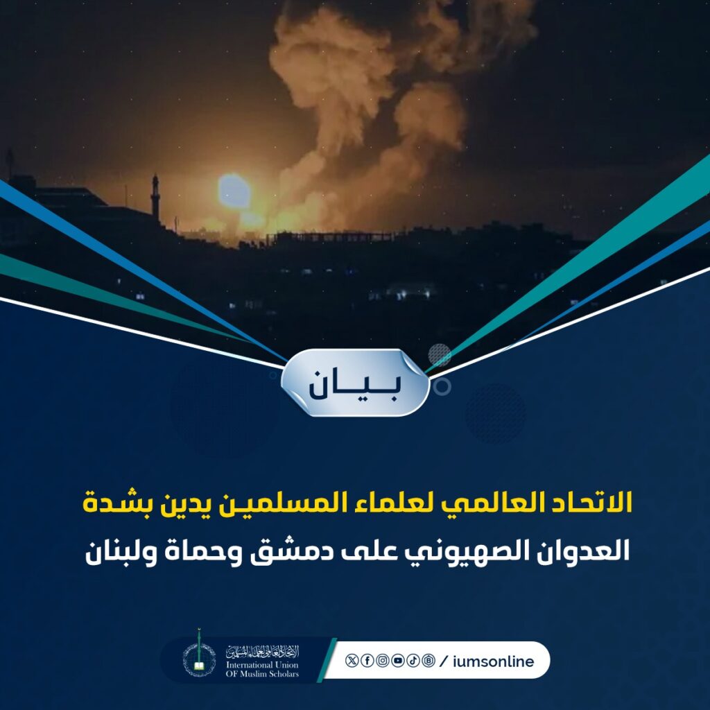 بيان الاتحاد العالمي لعلماء المسلمين بشأن العدوان الصهيوني على دمشق وحماة ولبنان