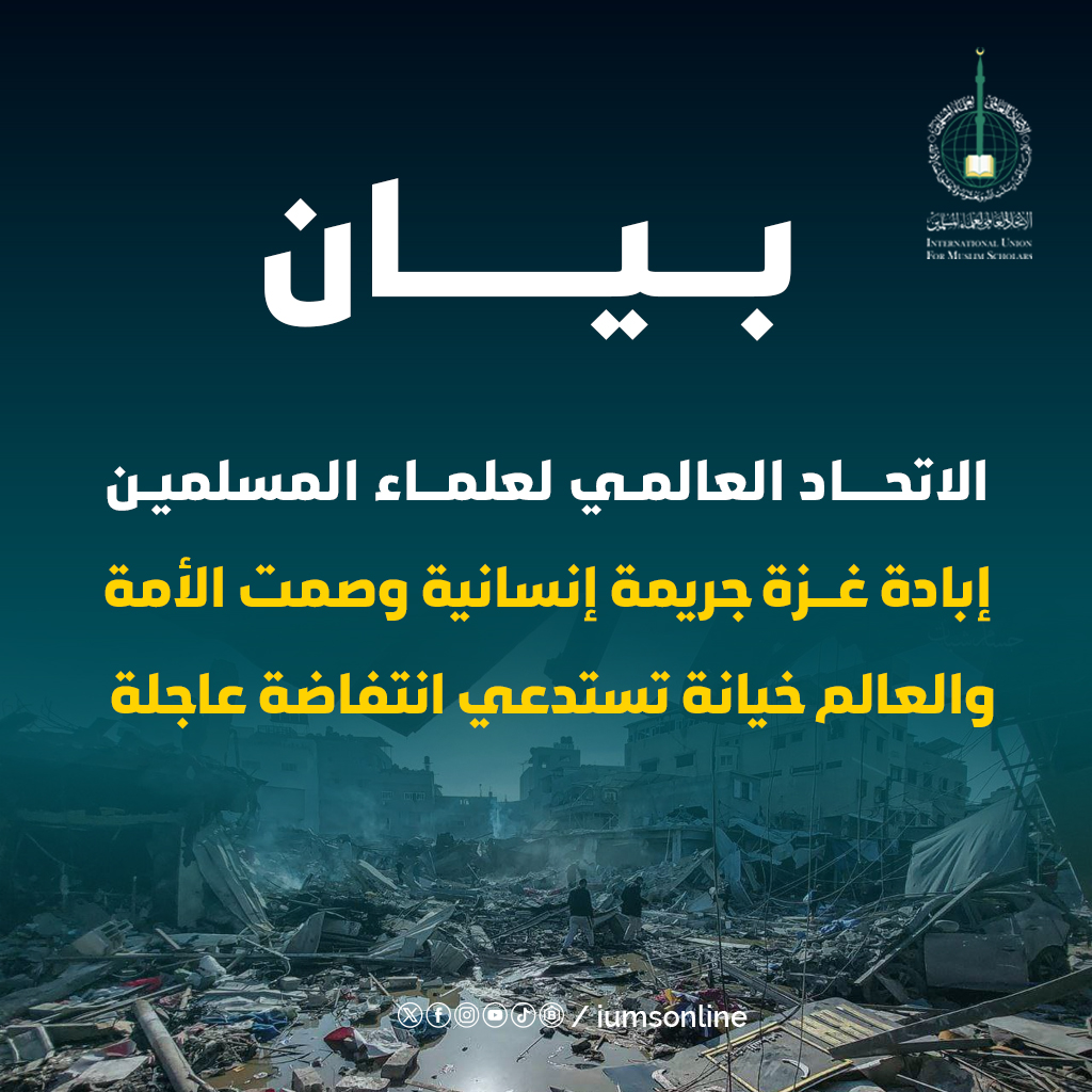 الاتحاد العالمي لعلماء المسلمين: إبادة غزة جريمة إنسانية وصمت الأمة والعالم خيانة تستدعي انتفاضة عاجلة (بيان)