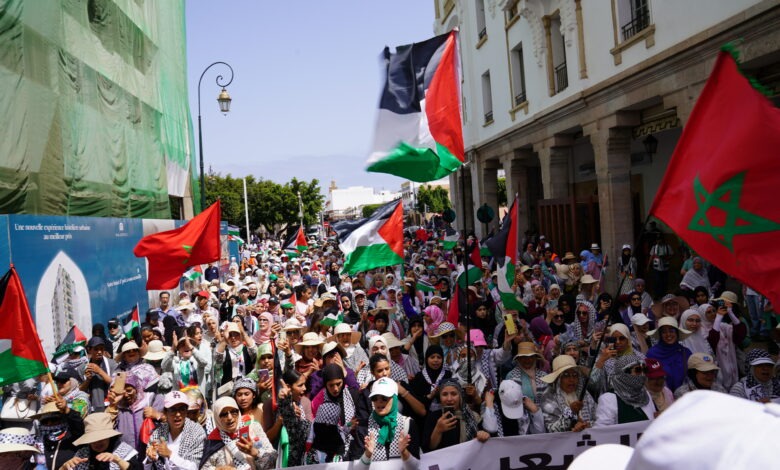 مسيرة مغربية حاشدة في الرباط ضد الإبادة في غزة ودعمًا للمقاومة ورفضًا للتطبيع مع الاحتلال الصهيوني
