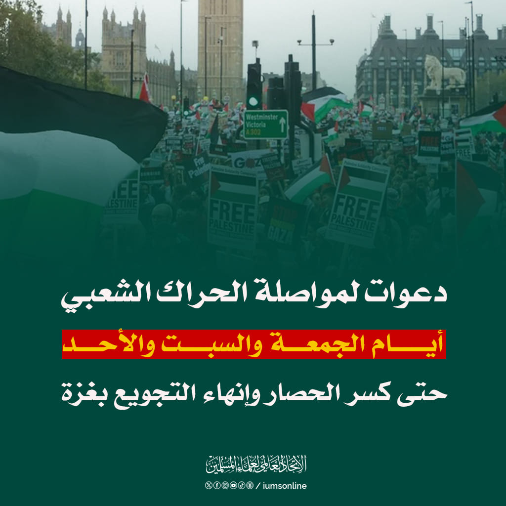 والإسلامية وأحرار العالم إلى مواصلة وتصعيد الفعاليات الجماهيرية، أيام الجمعة