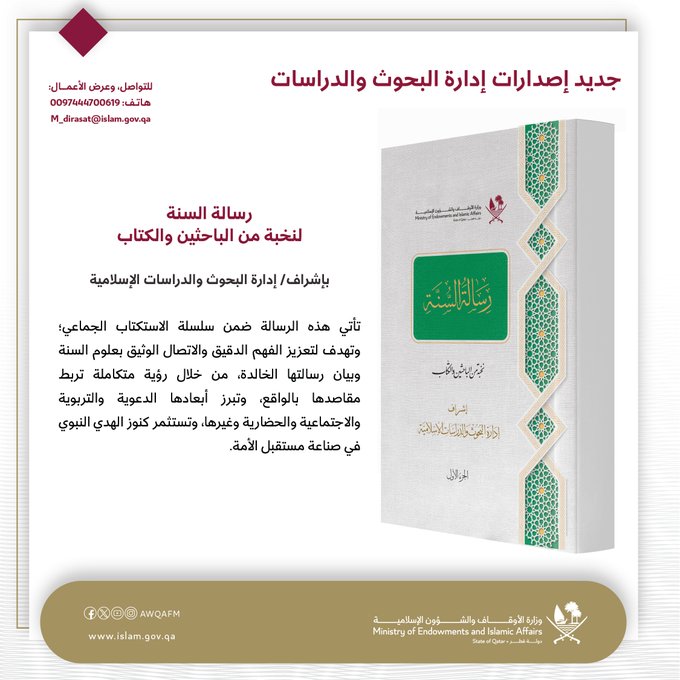 وزارة الأوقاف والشؤون الإسلامية القطرية تصدر كتابًا جديدًا عن السنة النبوية بعنوان “رسالة السنة”