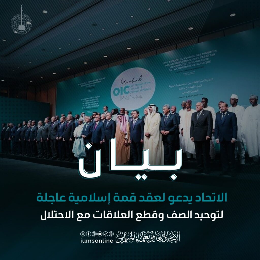 الاتحاد العالمي لعلماء المسلمين يدعو لعقد قمة إسلامية عاجلة لتوحيد الصف وقطع العلاقات مع الاحتلال